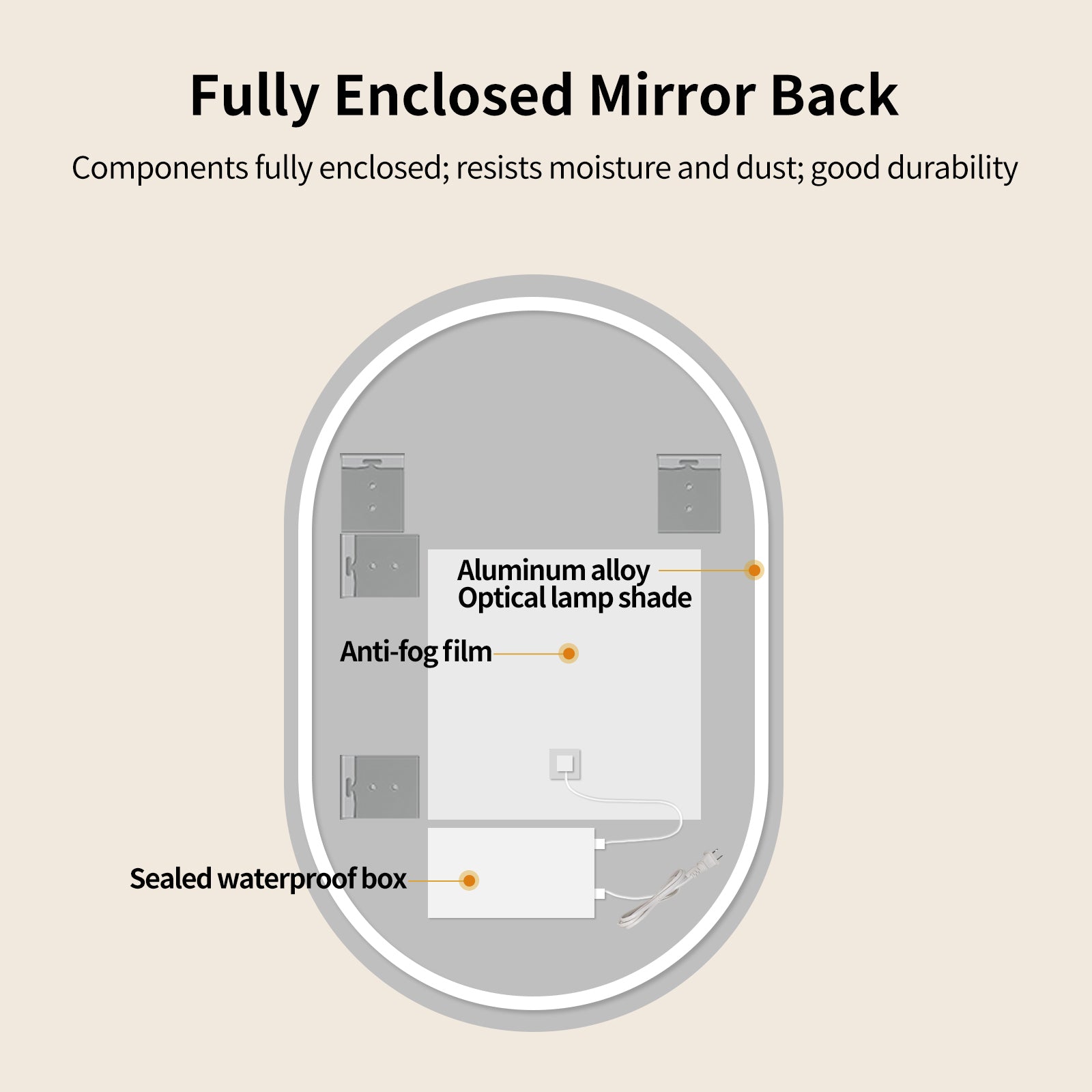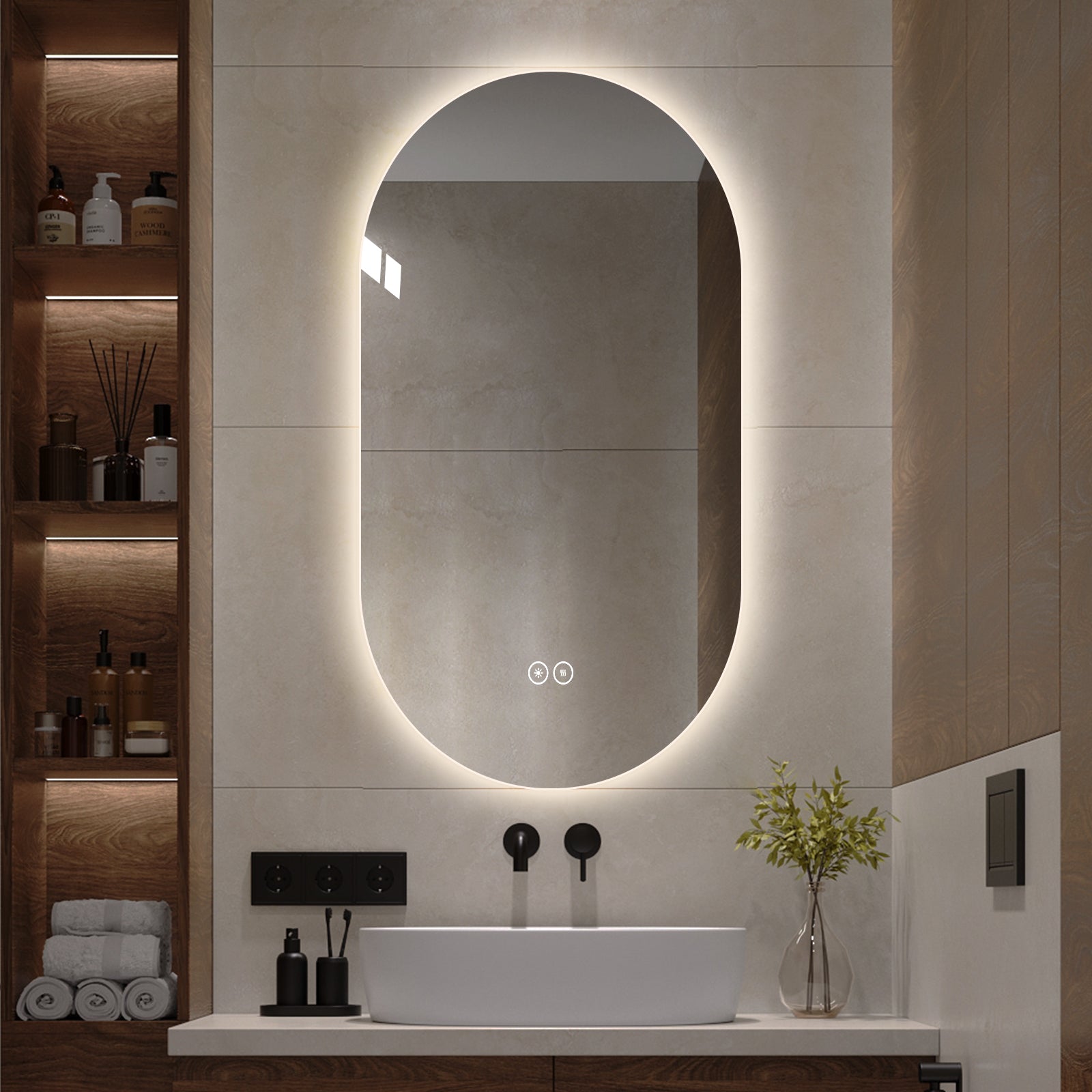 Yishare Oval LED Frameless Anti-Fog Explosion-Proof Bathroom Mirror