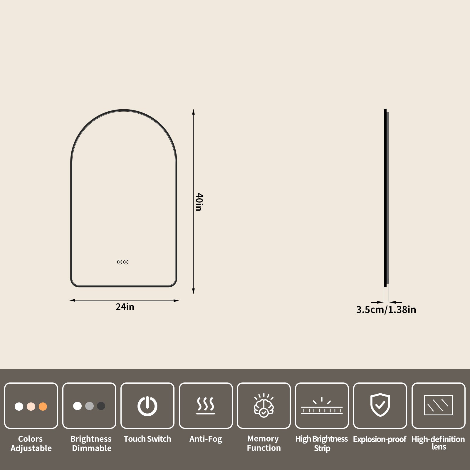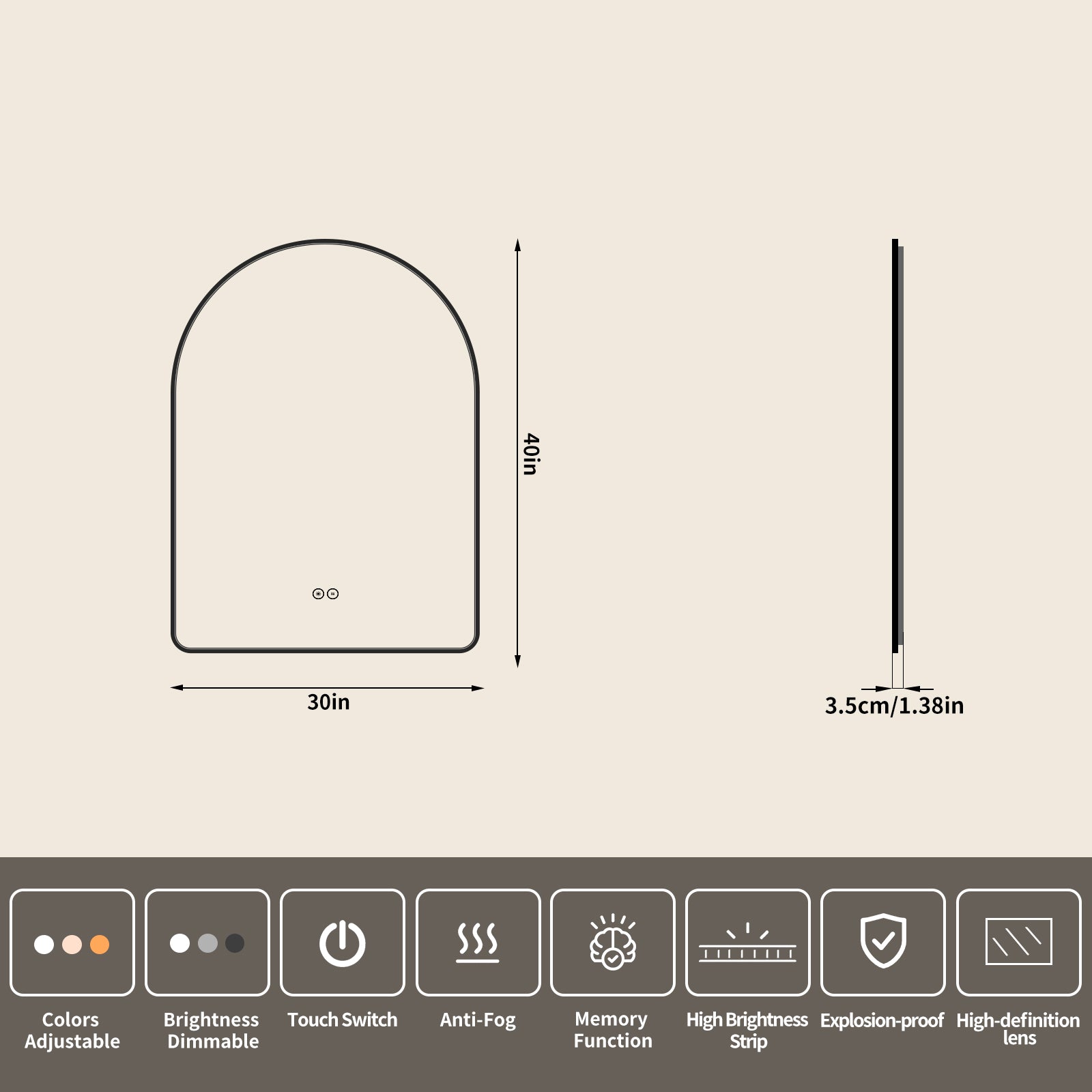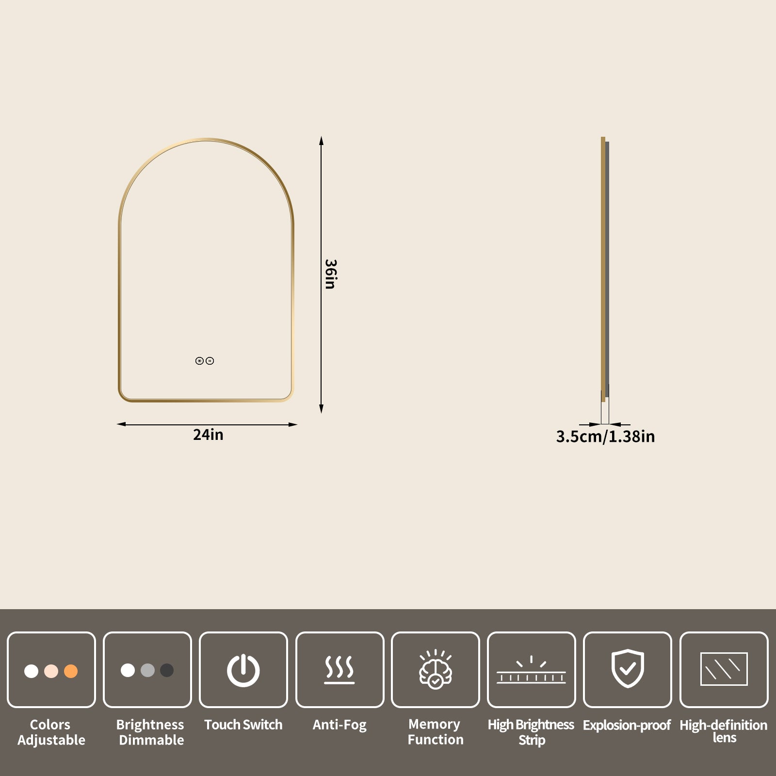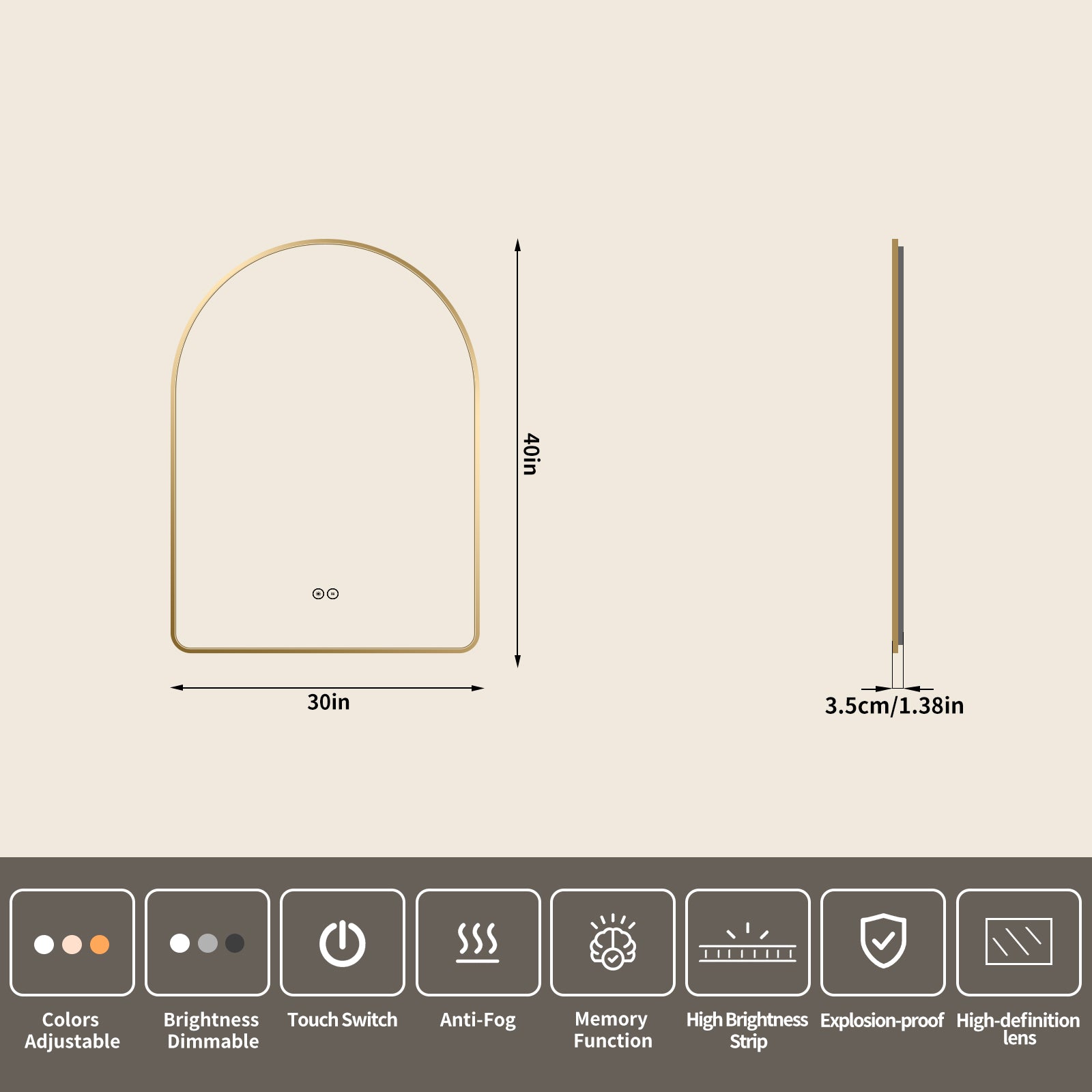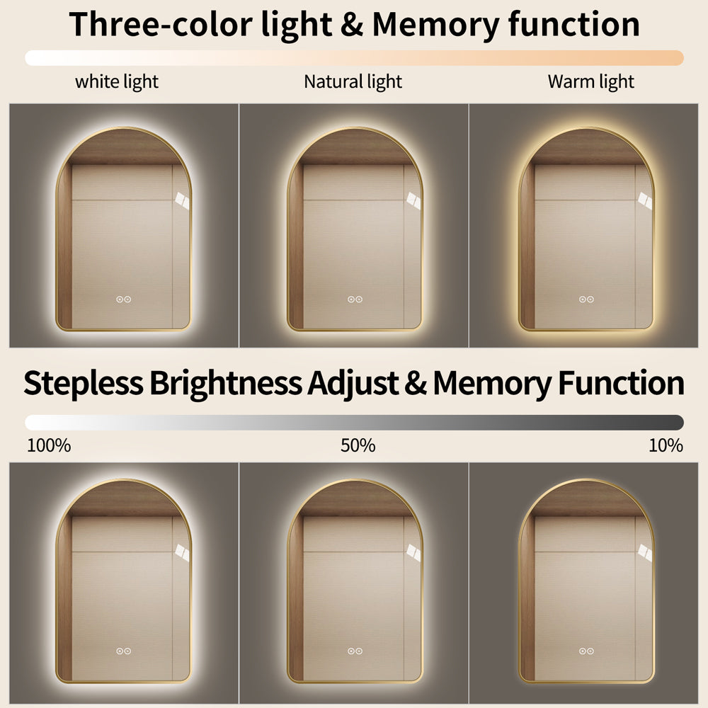 Yishare Arch-Shaped Framed Backlit Explosion-Proof Defogging Bathroom Mirror