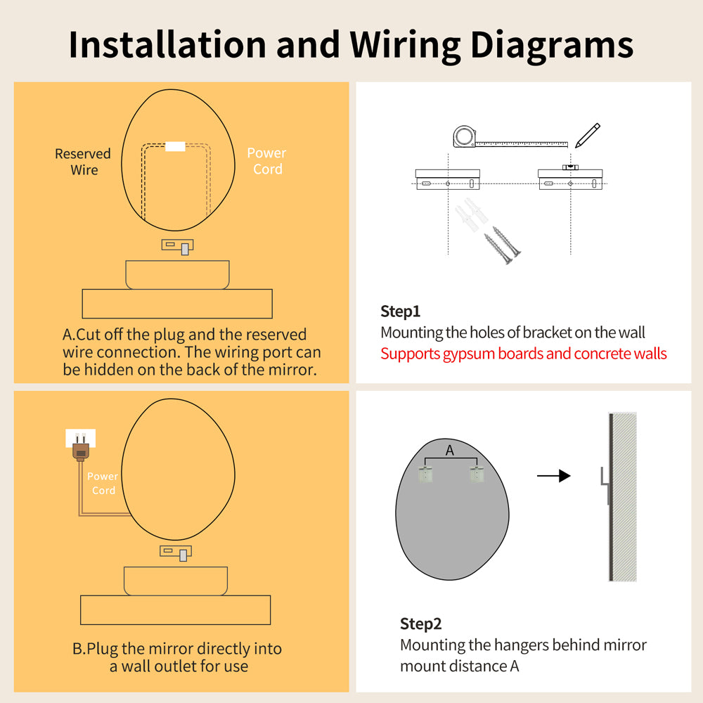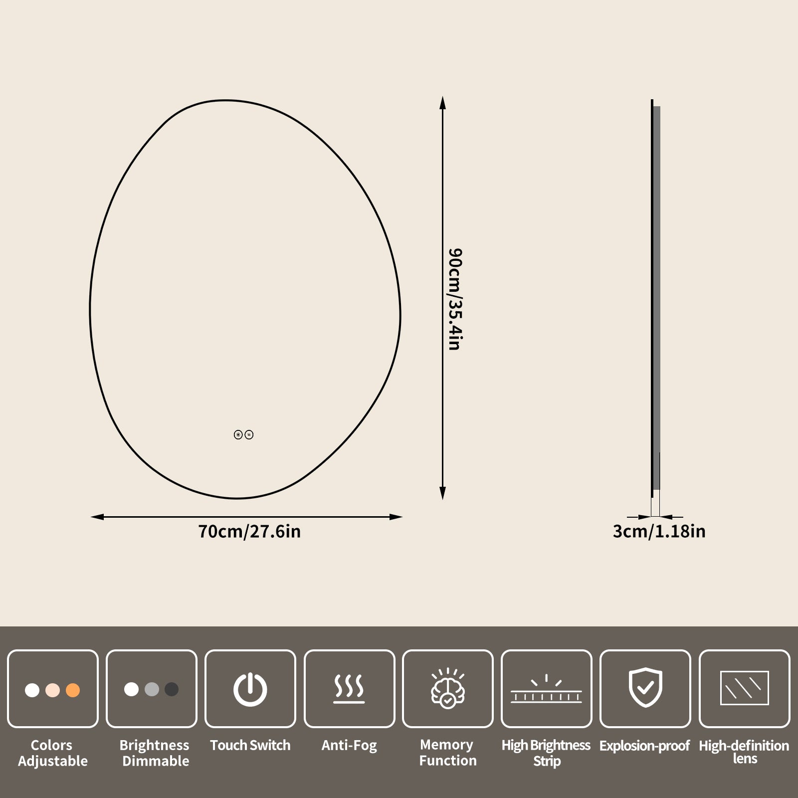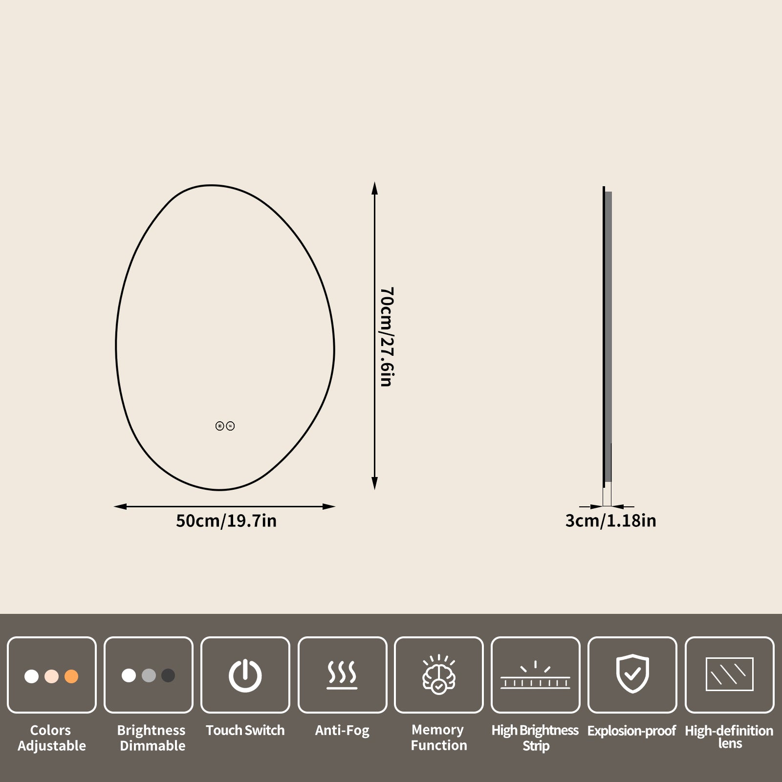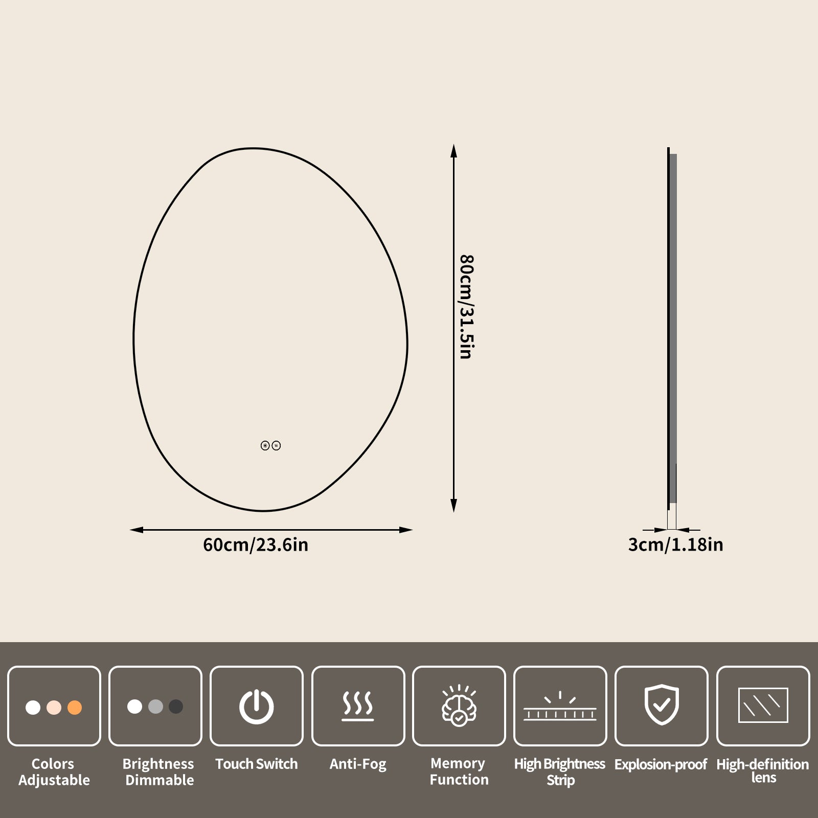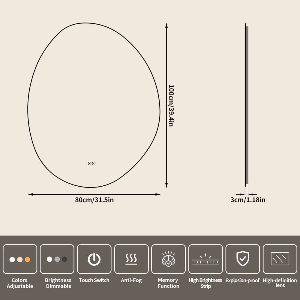 Yishare Egg-Shaped Backlit Defogging Explosion-Proof Bathroom Mirror