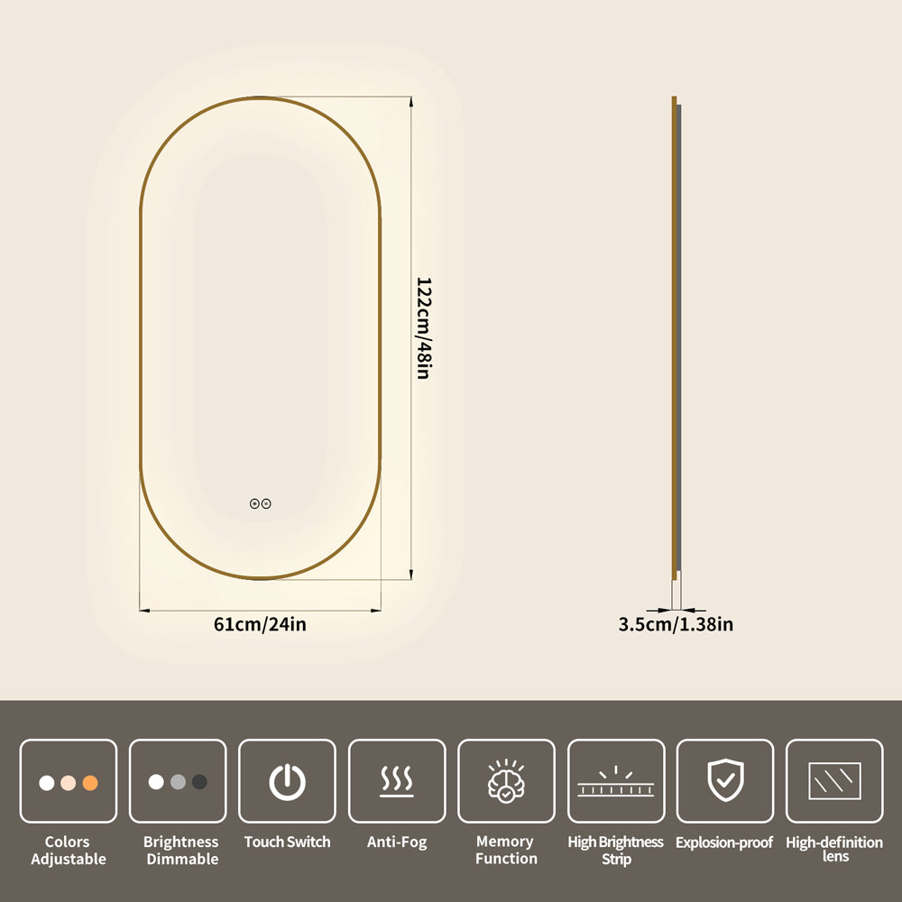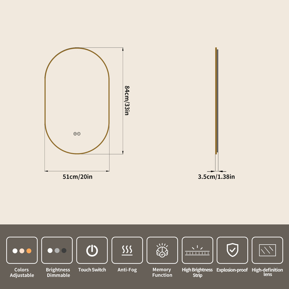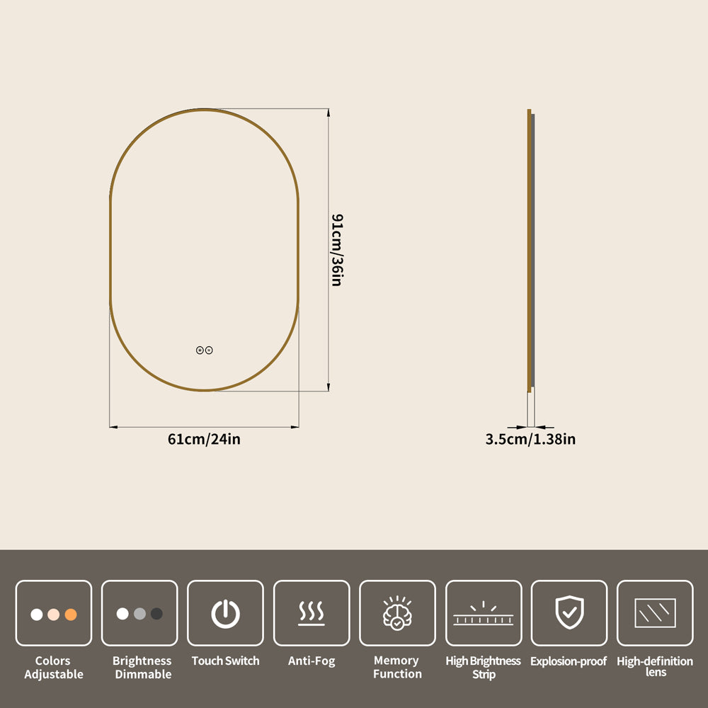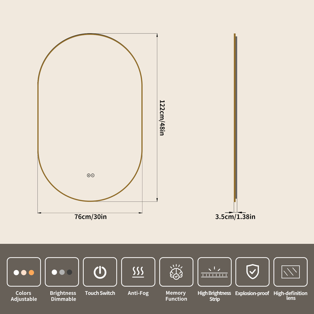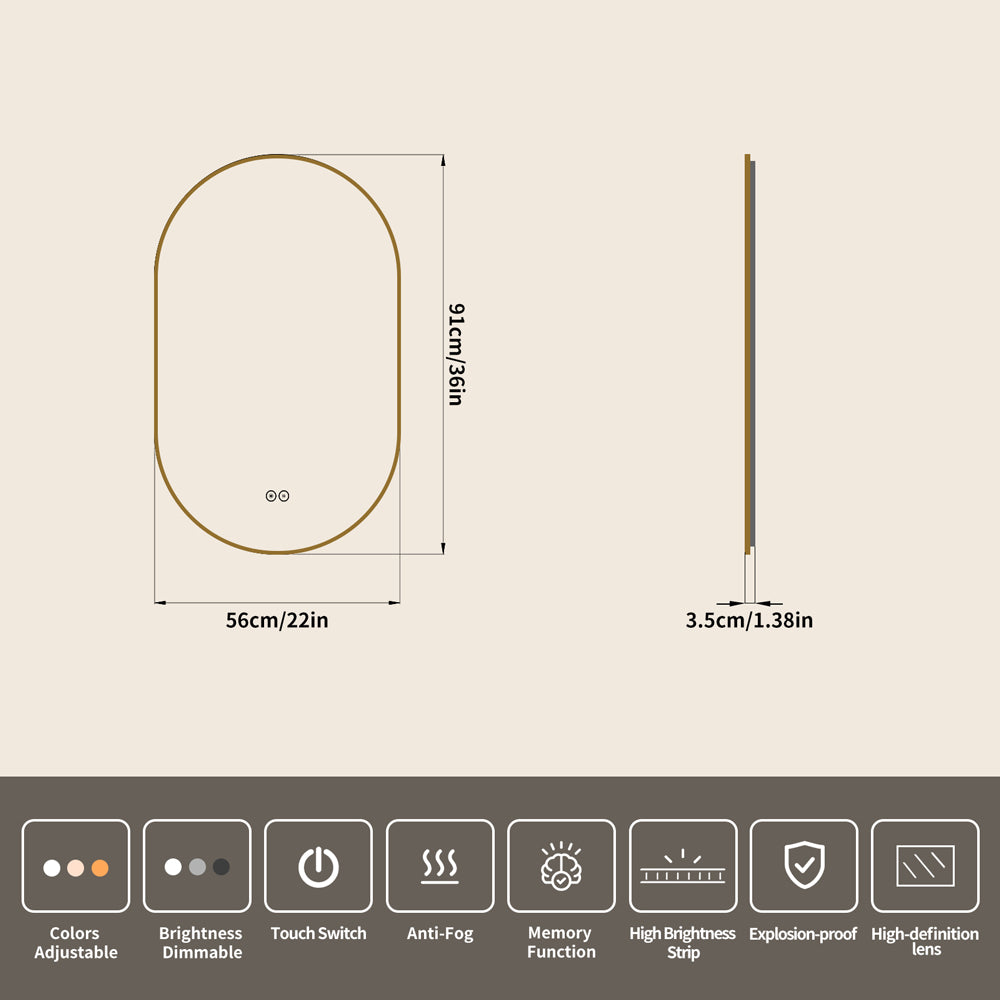 Yishare Oval-Shaped Framed Backlit Defogging Explosion-Proof Bathroom Mirror