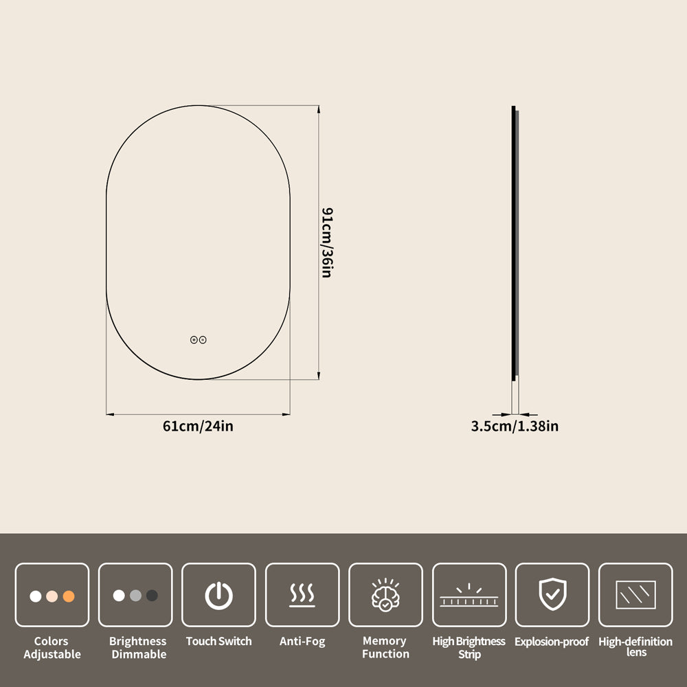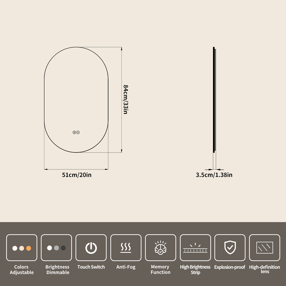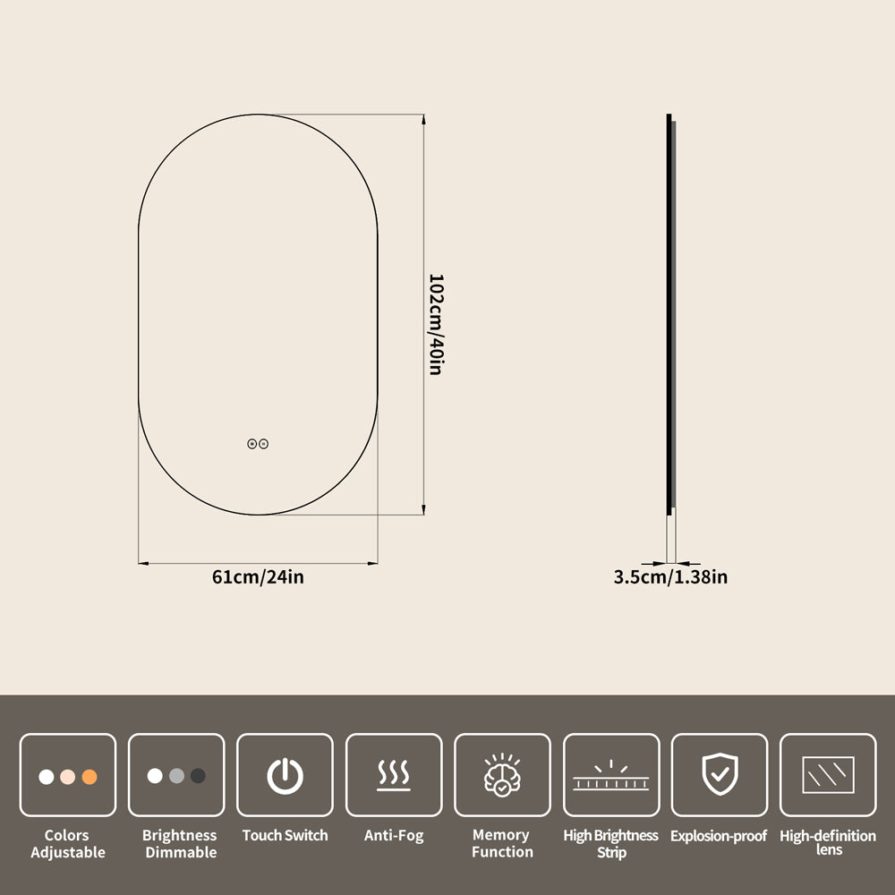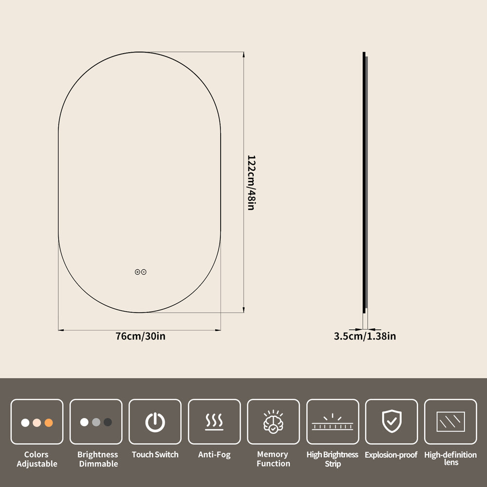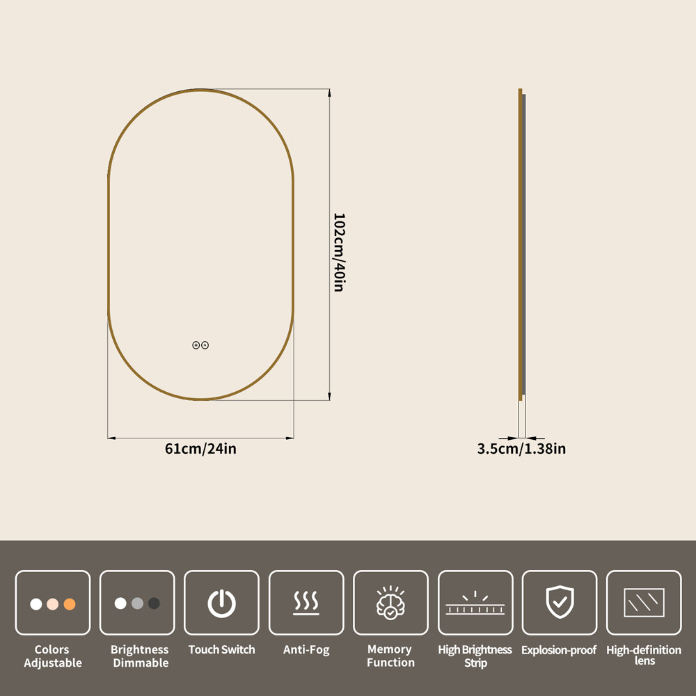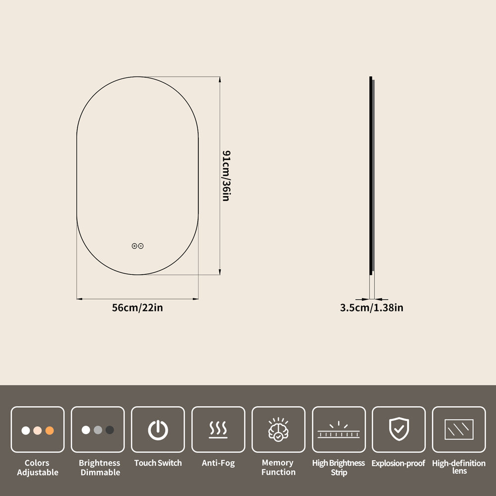 Yishare Oval-Shaped Framed Backlit Defogging Explosion-Proof Bathroom Mirror